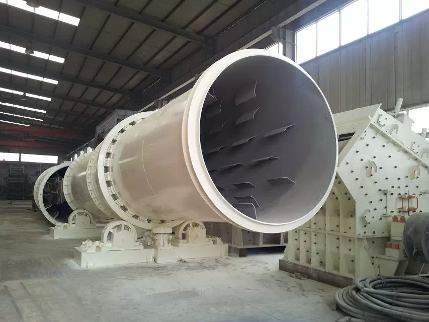 烘干机主要有筒体、大齿圈、小齿轮、托轮、挡轮、轮带、托轮轴等零部件组成。电动机通过三角皮带,经过减速器两级减速,通过小齿轮带动大齿圈,使筒体安设计转速进行